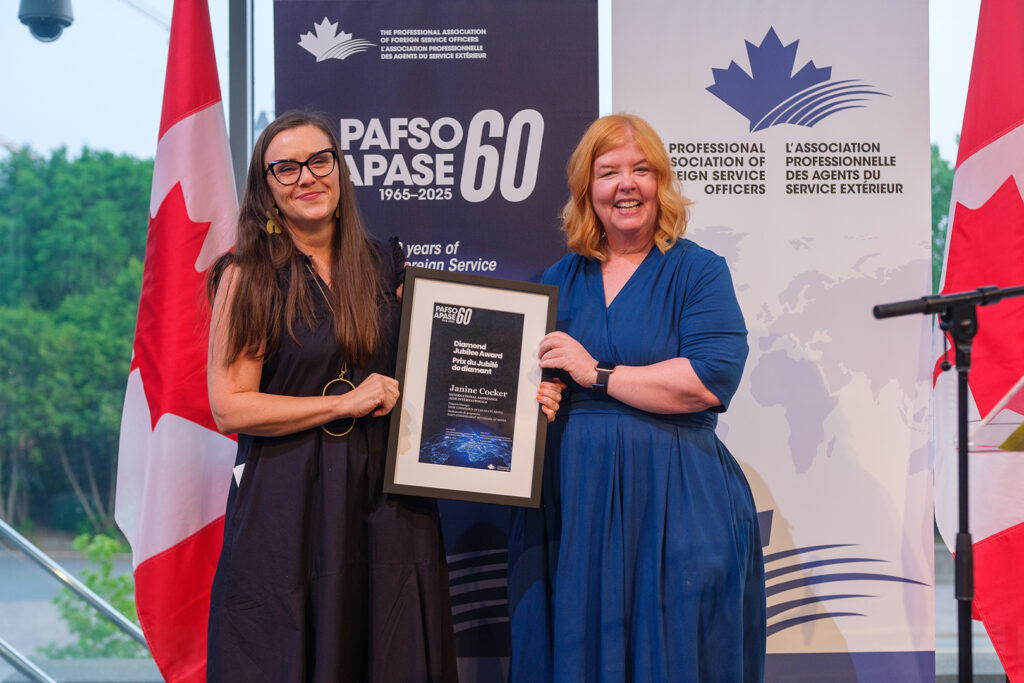 La lauréate du Prix du jubilé de diamant APASE 60 est Janine Cocker, directrice du Programme d’aide internationale au Haut-Commissariat du Canada à Nairobi (Kenya).